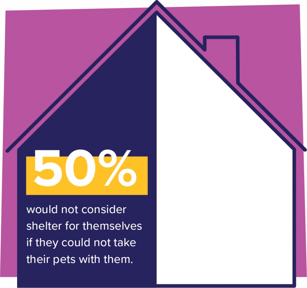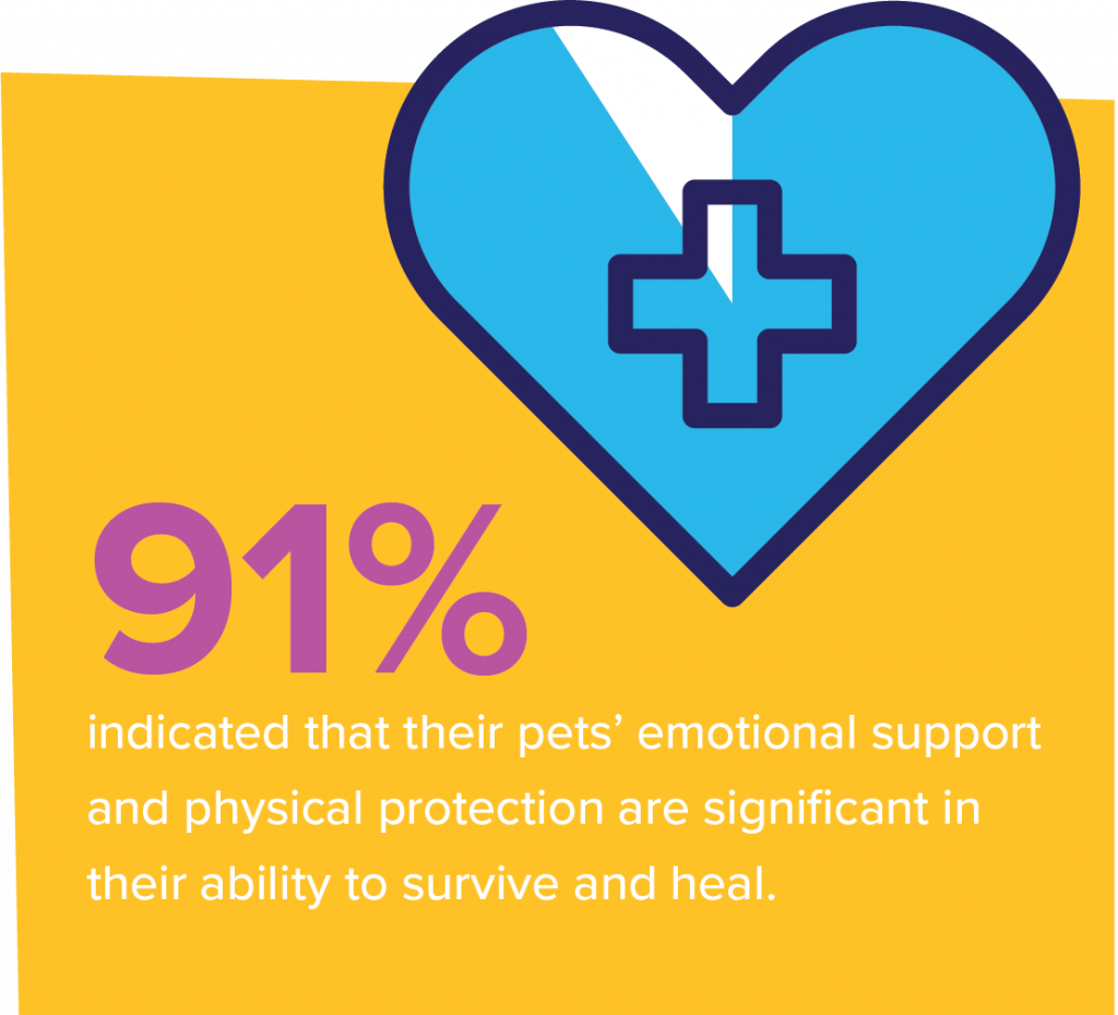 The PALS program operates at the intersection of social services and animal welfare. Research has shown that when there is violence in a home, all members of that home—both people and animals—are at risk and need access to safety. We also understand that pets are an integral part of a family, and especially acknowledge the importance of the human-animal bond for those who have experienced trauma. URI released “The PALS Report and Survey” in May 2021, including the findings of a 2019 survey conducted with the National Domestic Violence Hotline. The survey reinforced the notion that pets are an important part of a survivor’s family, with 91 percent of respondents saying their pet was critical to their own survival and healing, and 97 percent stating that keeping their pet with them was an important factor in seeking shelter. Additionally, concern for a pet’s safety and the lack of family shelters that can accommodate pets are critical reasons why survivors may delay leaving an abusive situation or return to a dangerous environment. Fifty percent of respondents to the PALS survey said they would not seek shelter if they could not take their pets with them. This data corresponds with what experience in the field has consistently shown: pets are essential in survivors’ lives, and the lack of programs that include animals as family members is a significant barrier to accessing safety.