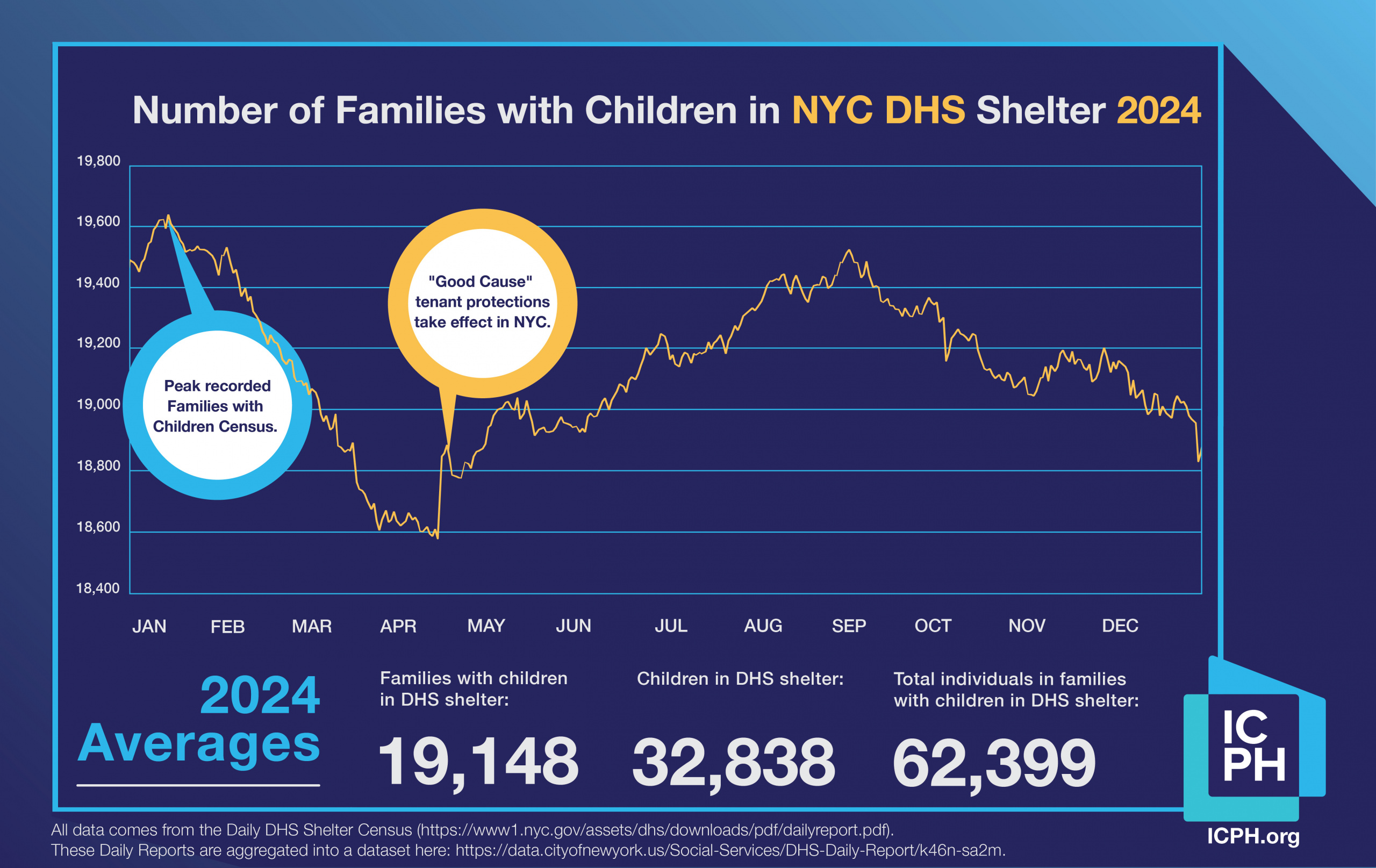 Average # of families with children in DHS shelter for 2024: 19,148
