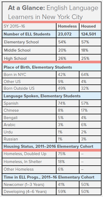 - Homeless students and ELLs are often considered as distinct groups by New York City public schools. However, as the two groups overlap significantly, it is critical to eliminate barriers between programs that serve these homeless students and ELLs through clear, consistent data sharing and communication between schools and departments.