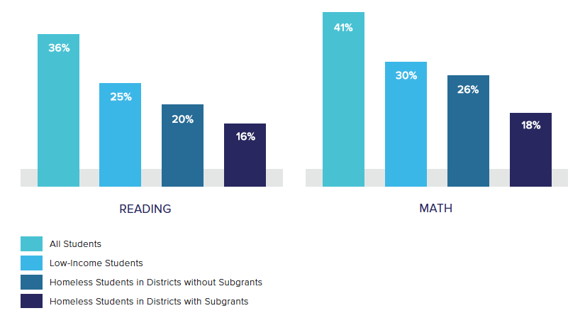 - Statewide: On average, homeless students were proficient in reading at a rate 16–20 percentage points lower than all students. In math, homeless students were proficient at a rate 15–23 percentage points lower than all students.
