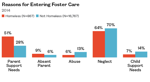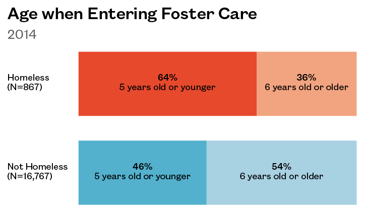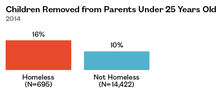 1 in 6 children who entered foster care from homeless families had parents aged 24 or younger, compared to 1 in 10 children who entered foster care for other reasons (16% to 10%).