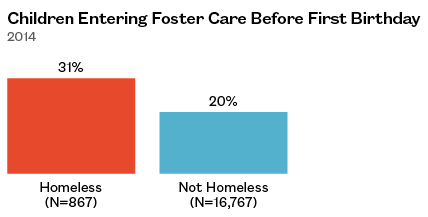 1 in 3 New York City children removed from homeless families entered foster care before their first birthday, compared to 1 in 5 housed children in foster care (31% to 20%).