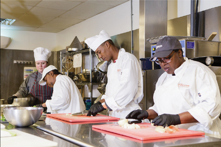 After completing the 12-week training program, at 180° Kitchen students take part in a job fair and showcase of their skills for local restaurants. Most students receive multiple job offers.