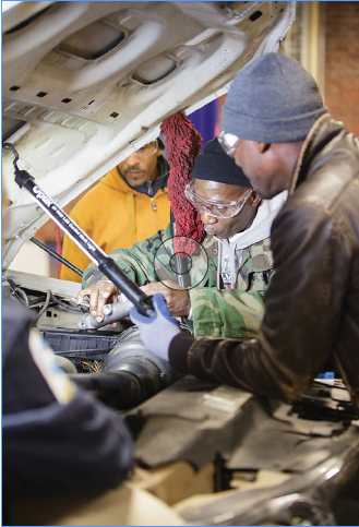 Still located on the campus of City of Refuge, but tackling the areas of vocational training and social enterprise in a wholly different way, is the NAPA Auto Repair Training Center. Here, 14 students per session undergo an intensive 40-hour a week, six-month course ending in guaranteed employment with NAPA if they complete the certification and meet the course requirements. This symbiotic relationship allows the Center to have knowledgeable instructors while NAPA is ensured their new employees are trained properly to serve their customers effectively.