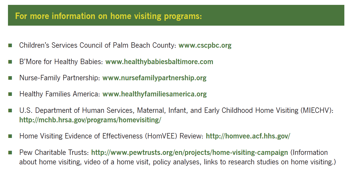 Baltimore, Maryland and Palm Beach County, Florida are just two examples where government agencies and nonprofits have joined forces to provide appropriate home visiting programs for mothers and families.