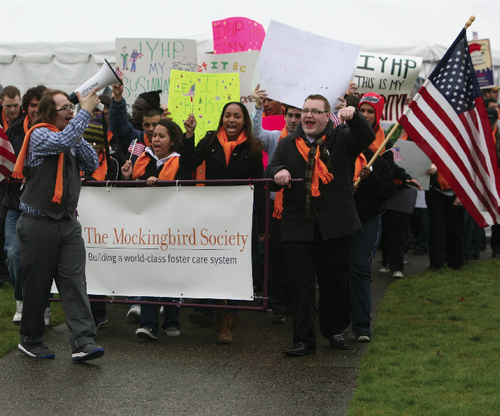 Buck connected with The Mockingbird Society, a Washington State-based group that advocates for youth in homeless and foster care. Every year, The Mockingbird Society sends 250 people with experience as homeless youth or in the foster care system for Youth Advocacy Day, back-to-back meetings with legislators to advance the agenda youth themselves created. The Mockingbird Society’s legislative achievements have included a bill that extends health care benefits to youth exiting foster care until they are 21 years old, and 2011’s Extended Foster Care bill, Washington’s first step toward implementing Fostering Connections, allowing youth finishing their secondary education to remain in care until age 21.