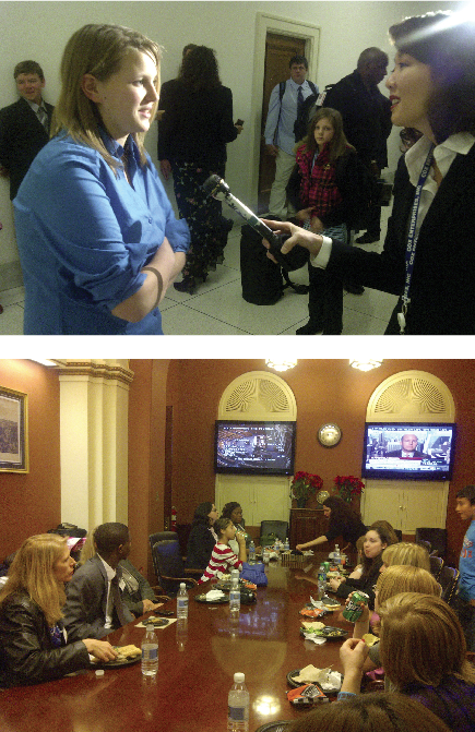 Above bottom: After testifying at a congressional hearing, a group of students were invited to have lunch with Congresswoman Judy Biggert (R-IL).
