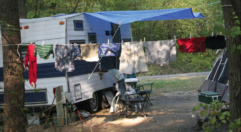 Hingham, MA: Wompatuck State Park. I noticed the composition of the clothes hanging on the line didn’t fit the typical array. It looked more like someone washed out items in a five-gallon bucket. Speaking with the mother verified my guess: She, her husband and their 18-month-old baby were having, as she put it, “hard times.” They also didn’t have money for propane to heat their little rig. The temperature got down to the 30s at night. I heard them arguing—the well-worn script of the desperate income-challenged (albeit mobile) households—so I shared an “extra” electric heater with her.