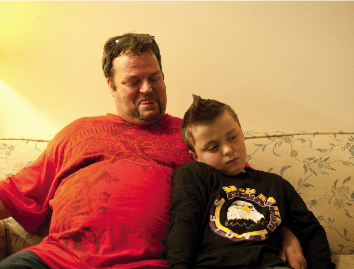 When D.J. was younger David struggled with an addiction to methamphetamine, which left him toothless, unemployed, and unable to care for his son. “It’s not that I was a bad dad, I just got caught up in it,” David says. D.J.’s mother is out of the picture, and D.J. was put in foster care for two years. Determined to get his son back, David enrolled in a drug- and alcohol-treatment program and visited his son in foster care every week without fail.