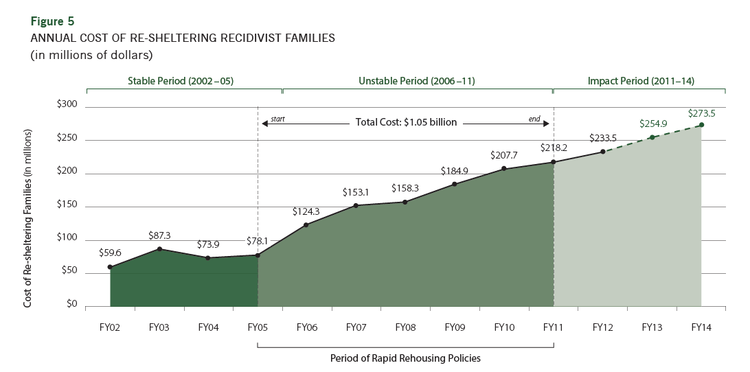 Note: All figures represent the number of “repeat” families multiplied by $33,000, the annual cost of sheltering a family.