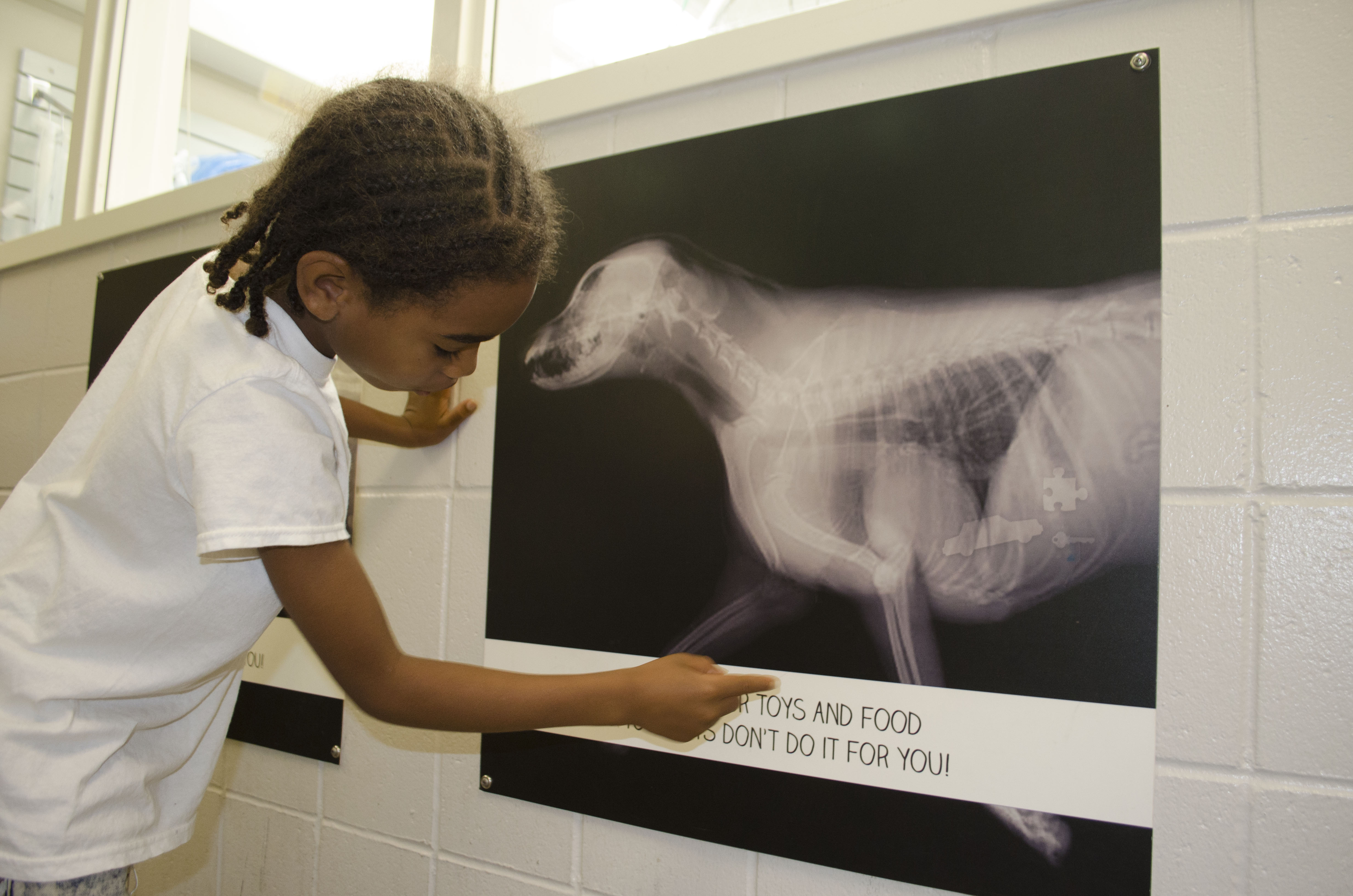 Completely KIDS recognizes that children experiencing homelessness need social-emotional support. Their shelter programming provides children security and comfort, along with service learning opportunities. Here, a child in the Completely KIDS homeless shelter program points out dangers to pets during a field trip to the Nebraska Humane Society.