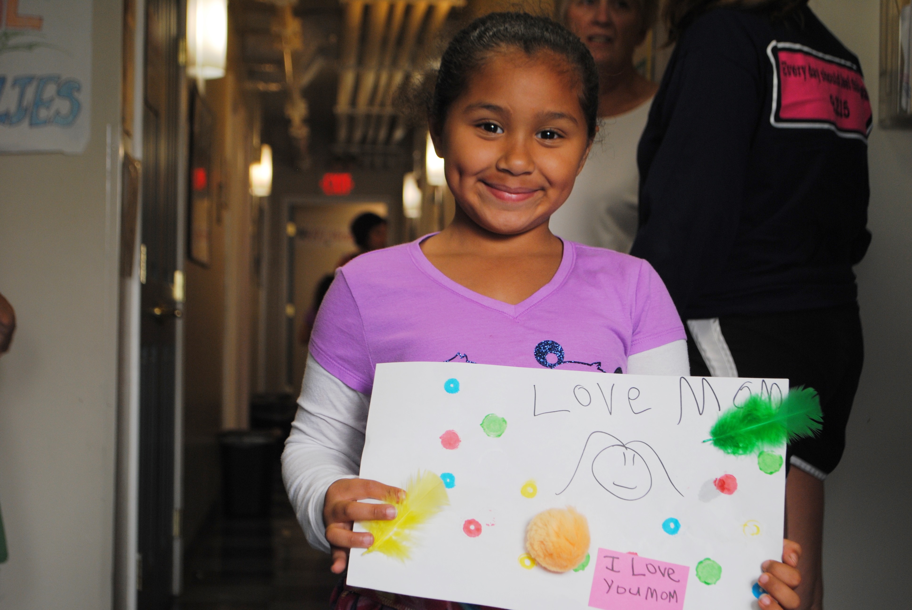 HCPP staff is trained to infuse therapeutic principles into healing play. “Sometimes we might notice a child playing ‘eviction’ with a dollhouse or acting out a domestic violence scene,” says Hatter. “We are able to follow-up with parents who might not be aware of what their children are struggling with and provide necessary referrals or support. We offer yoga, art projects, and fun opportunities for expression and physical exercise critical for stress reduction and promoting healthy child development,” she says. Here’s a portion of a speech from a participant whose behavior was positively impacted by the program: