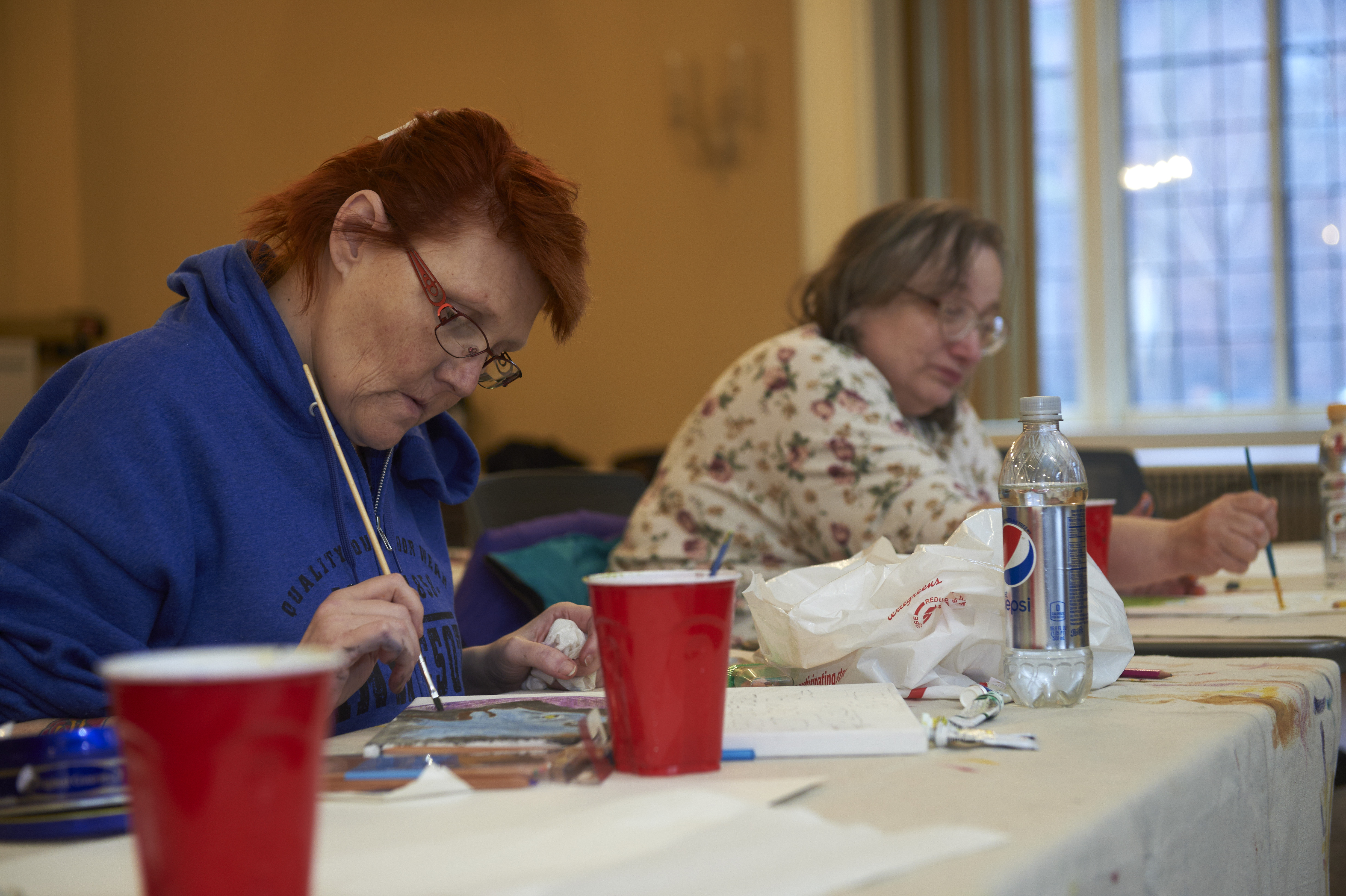 People Incorporated Mental Health Services in St. Paul, MN provides community mental health services, in-school and in-clinic resources for children and families, and homeless outreach for adults. Their Artability class, shown here, is a painting class open to anyone with mental illness, not just clients.