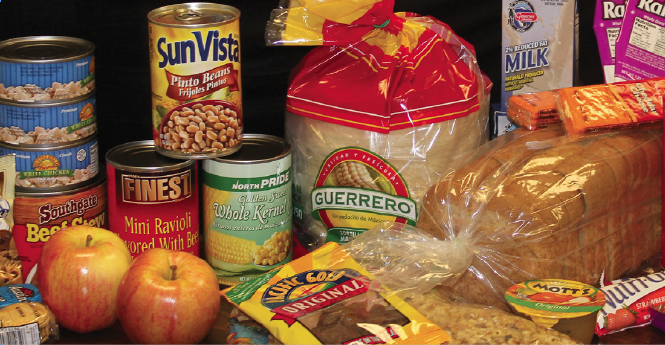 The Kidz Fuel-Snack Pack Program provides backpacks that include items such as those pictured—from healthy breads and fresh fruit to sources of protein like canned tuna and beans.