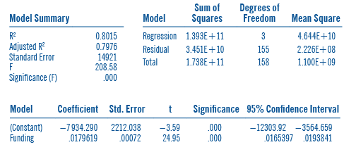 Technical Notes: A simple ordinary least squares regression model, with the amount of state EHCY funding as the predictor and the number of homeless students per state as the response variable (controlling for school years 2006–09), explains the relationship with 80% accuracy. This analysis indicates that for every $55.67 of federal dollars invested, another homeless student is identified and served.