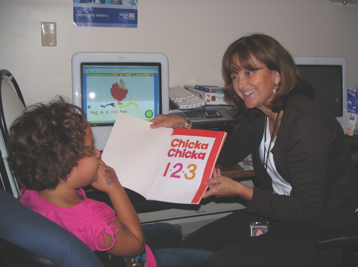 An instructor at School on Wheels of Massachusetts makes after-school learning fun as she works with a student in the program, reinforcing skills that the student learns during regular school hours so that she keeps pace with her peers.