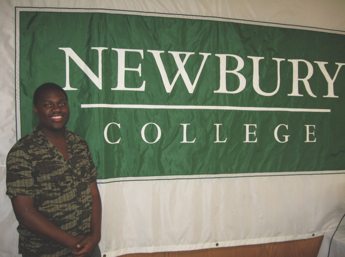 A junior at Newbury College in Brookline, Mass., Lamar is now studying culinary arts and hotel management with dreams of becoming a chef and owning his own restaurant. He shows off his school pride in front of a banner for the college and credits his participation with School on Wheels of Massachusetts for his current success.