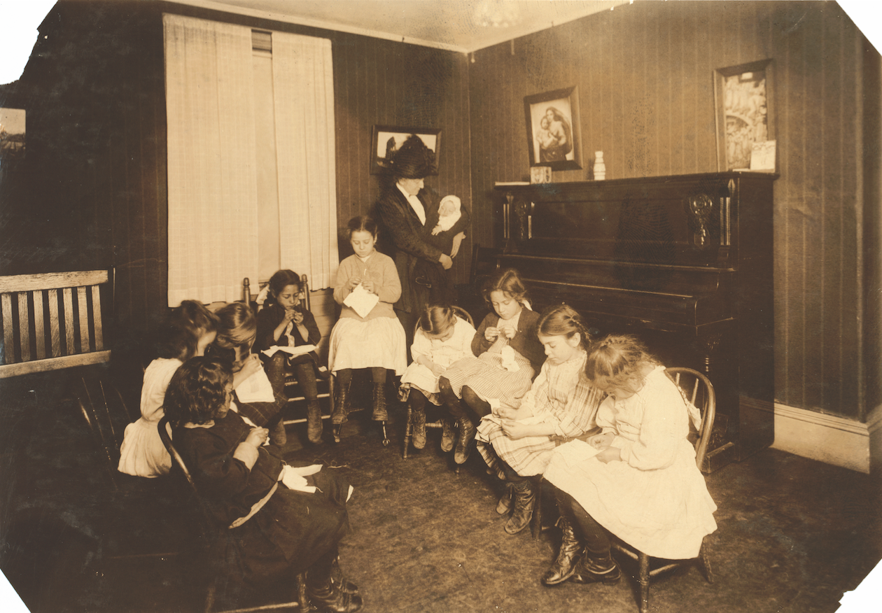 Many settlement houses offered classes designed to develop domestic or professional skills. Here, girls learn to sew at Sprague Settlement in Rhode Island. Photo courtesy of Library of Congress, Prints and Photographs Division.